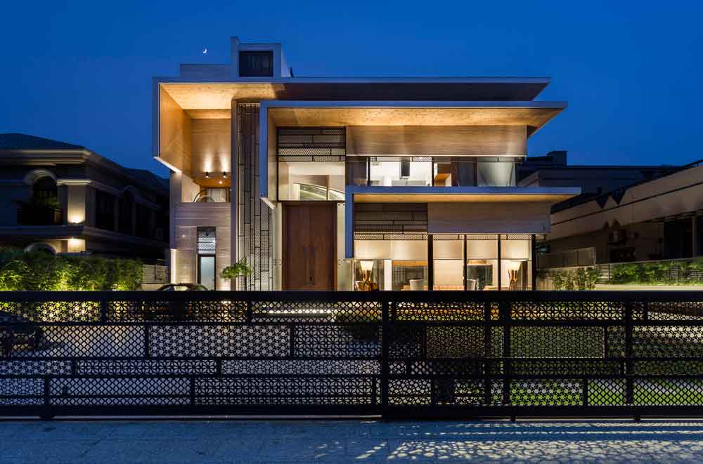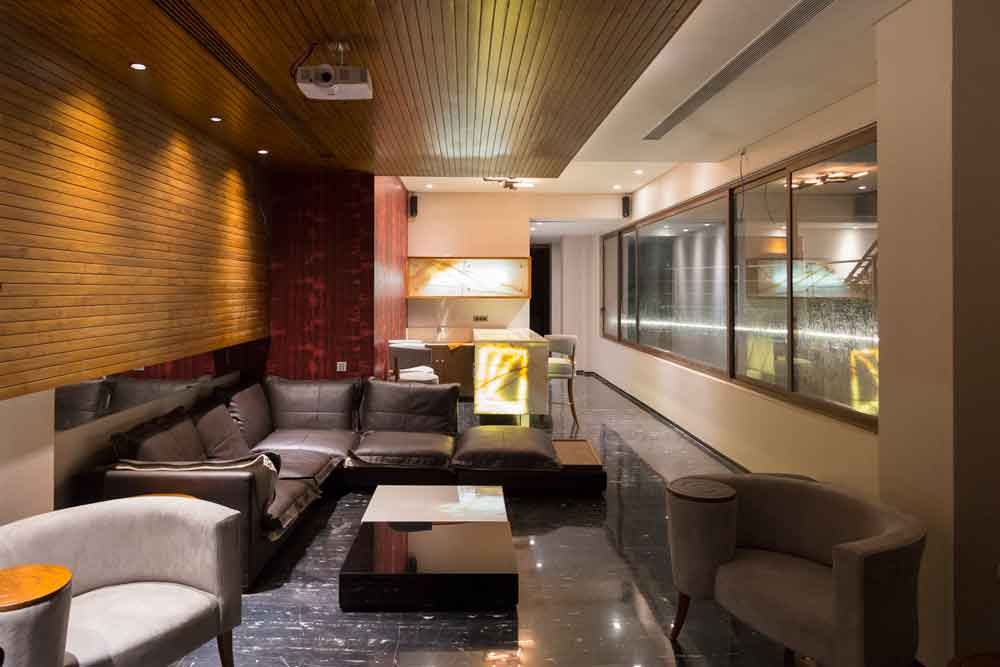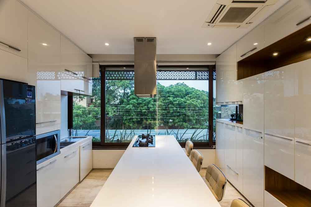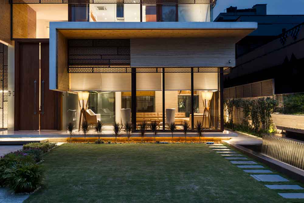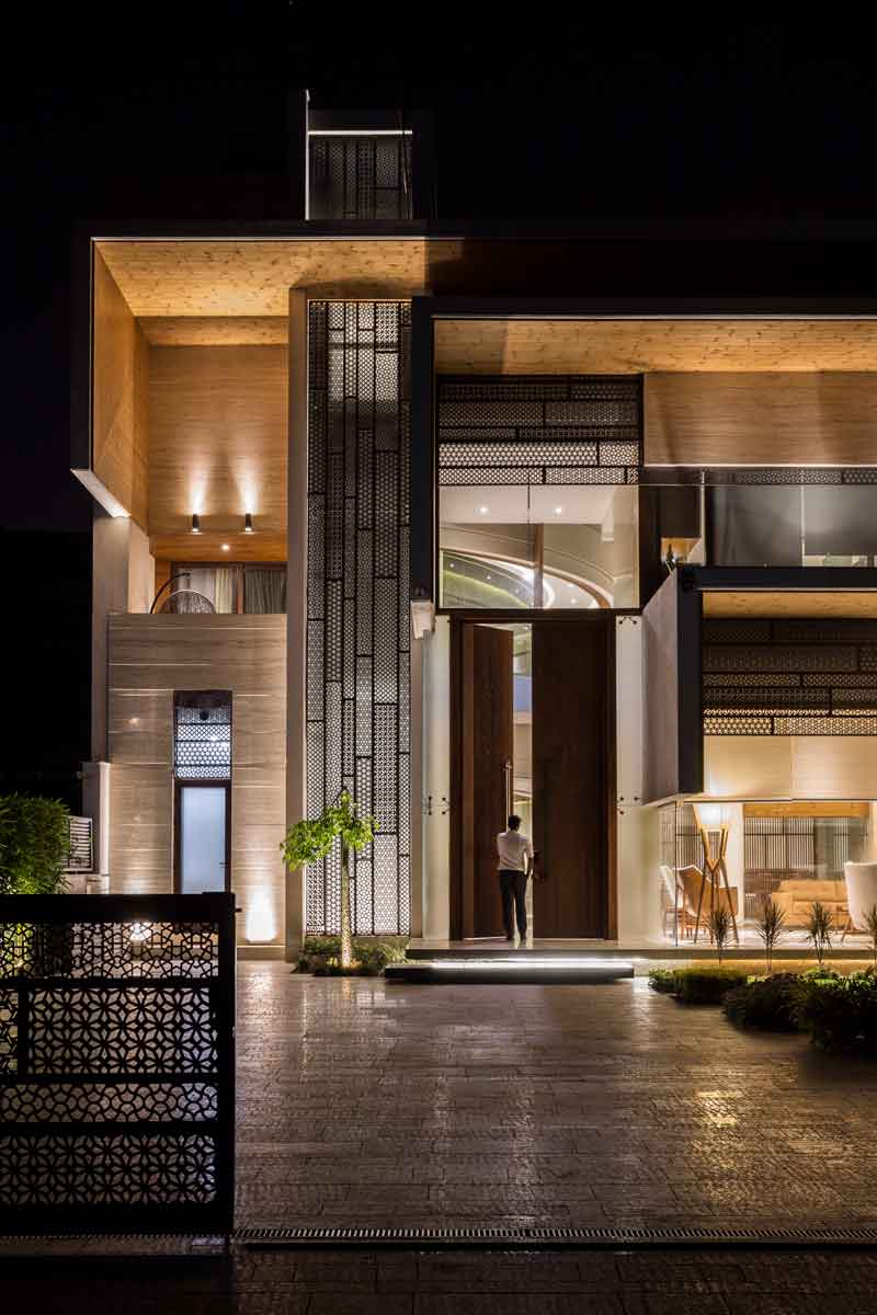 This project exemplifies Charged Voids’ approach of using a few simple, bold strokes to create a powerful composition which is evident in the geometric façade of the house. This 8,500 sqft structure is a balance between public and private spaces that divides the functions on different levels while maintaining visual connections through the central space.