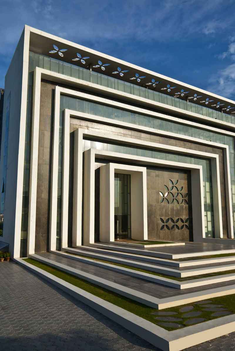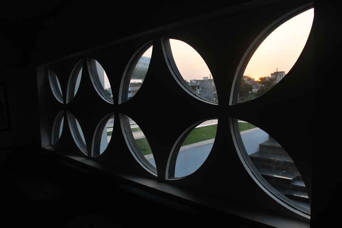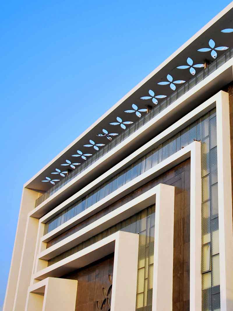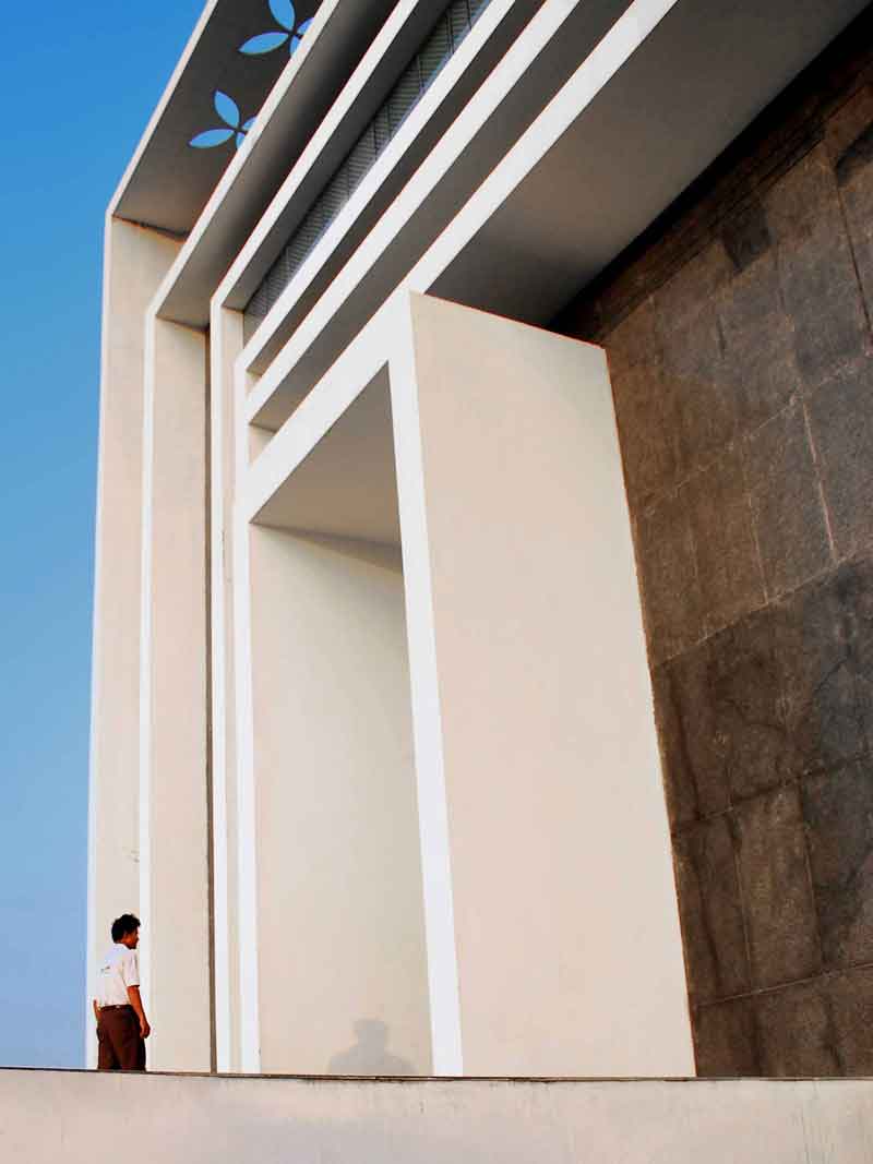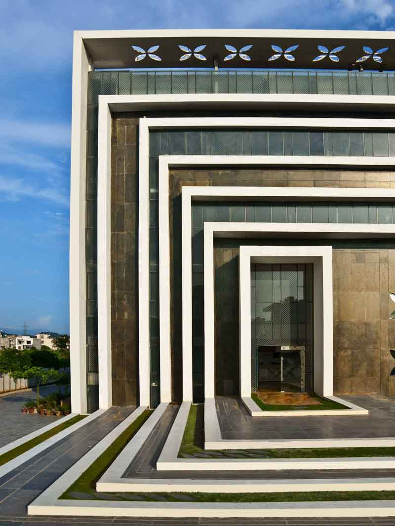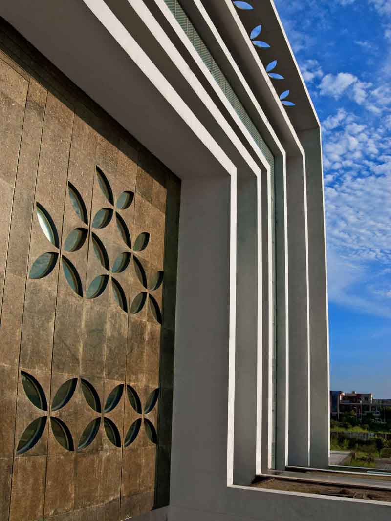 The 1200-student capacity school attempts to solve the complex problem of an urban school site in the midst of a residential zone with a very high land value. The resultant structure rises to four levels in order to achieve the high FAR. However, the focus was to retain ample playgrounds and a strong connection to the outdoors on all levels by creating a number of interstitial spaces. The façade was designed to emphasize the grandeur of the prestigious institution yet be rooted in the local context of the Chandigarh region—particularly Corbusier’s vision for the city. A strong geometrical form with multiple frames in a rhythmic pattern was designed on the elevation not just as aesthetic features but also as sun-breakers.